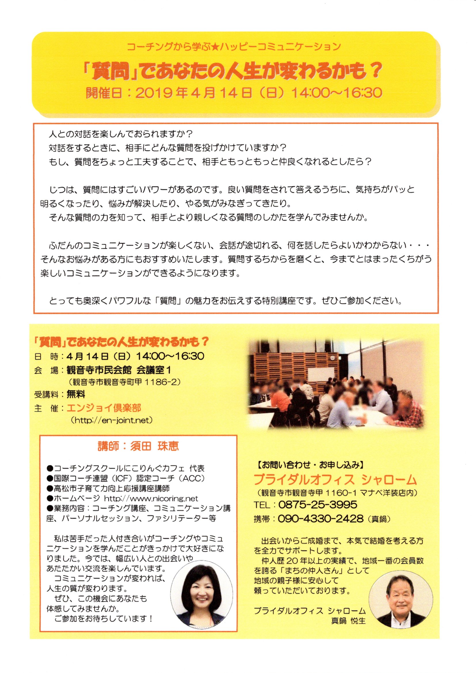 【終了】4/14(日) 『質問』であなたの人生が変わるかも?