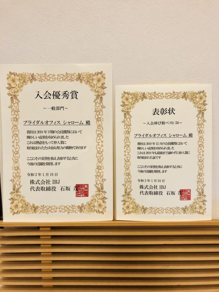 日本結婚相談所連盟(IBJ)より表彰状が届きました!